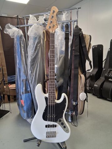 pre owned Squire pression bass has a small chip and slight lacquer crack by neck pocket in very good condition ideal first bass